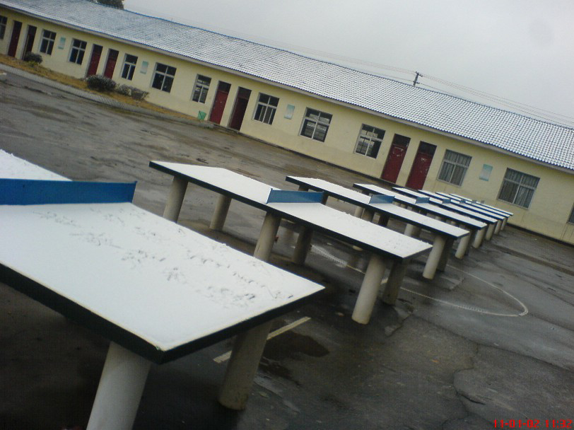 因前晚的网吧通宵和昨天的一天的外出,今天早十一点左右才起床,累得不得了,洗刷完就可以去吃午饭了,出门发现草地全白了,听说今天要下大雪,乒乓球台上的雪堆了好多,吃饭时手冷得不听话,回来的时候都是玩雪回来的,抓草地上的雪捏成一个球可以滚,可以扔得好远,乒乓球台上的雪都被玩完...