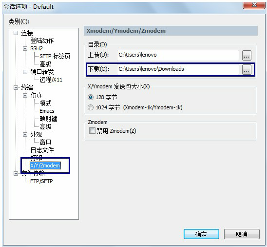 即可将文件下载至downloads目录。downloads目录的位置可以在SecureCRT的会话选项中设置,如下图:1 [root@www ~]# sz filename