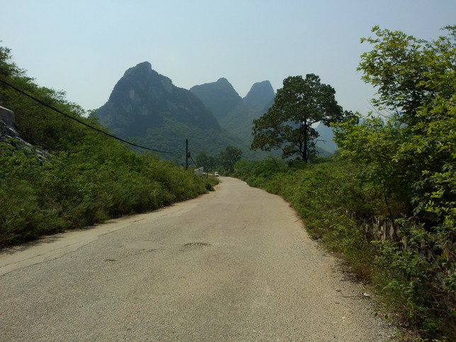 回到青旅,准备了下就弄好自行车骑出去,目标是七星岩,走了一段路,青同学在接打电话,搞错了路线,走到了江边,那个地方我认识,我以前走过,我一看就知道叠彩山在那边,喝了份绿豆沙,回头继续上路,这次走对了,不过还是有点不太对,走到了野外,不是按大路走的,要看看地图和问下路人才知道怎么去。到了七星岩也没什么可看的,没有进去,在外面逛了下,继续往前走,这次走没有目的,只是一直往前走,风景不错,到了头才返回,去时她搭我,回时我搭她,很累。