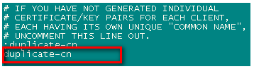 如果Client使用的CA的Common Name有重复了,或者说客户都使用相同的CA #和keys连接VPN,一定要打开这个选项,否则只允许一个人连接VPN