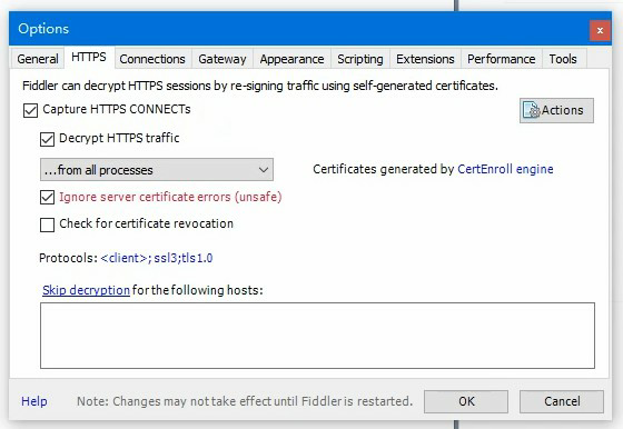 1,打开代理软件(Fiddler),设置解密证书,使流量可解密