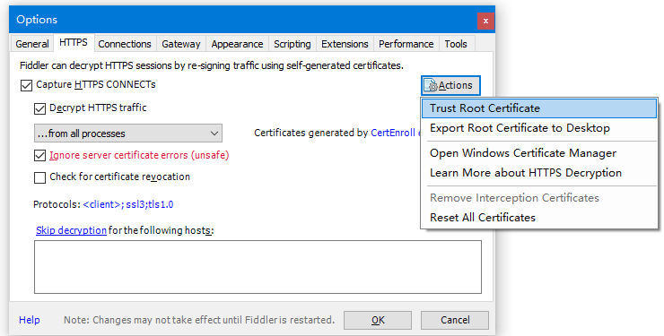 3,选择 Actions - Trust Root Certificate,然后一路Yes就可以下一步了