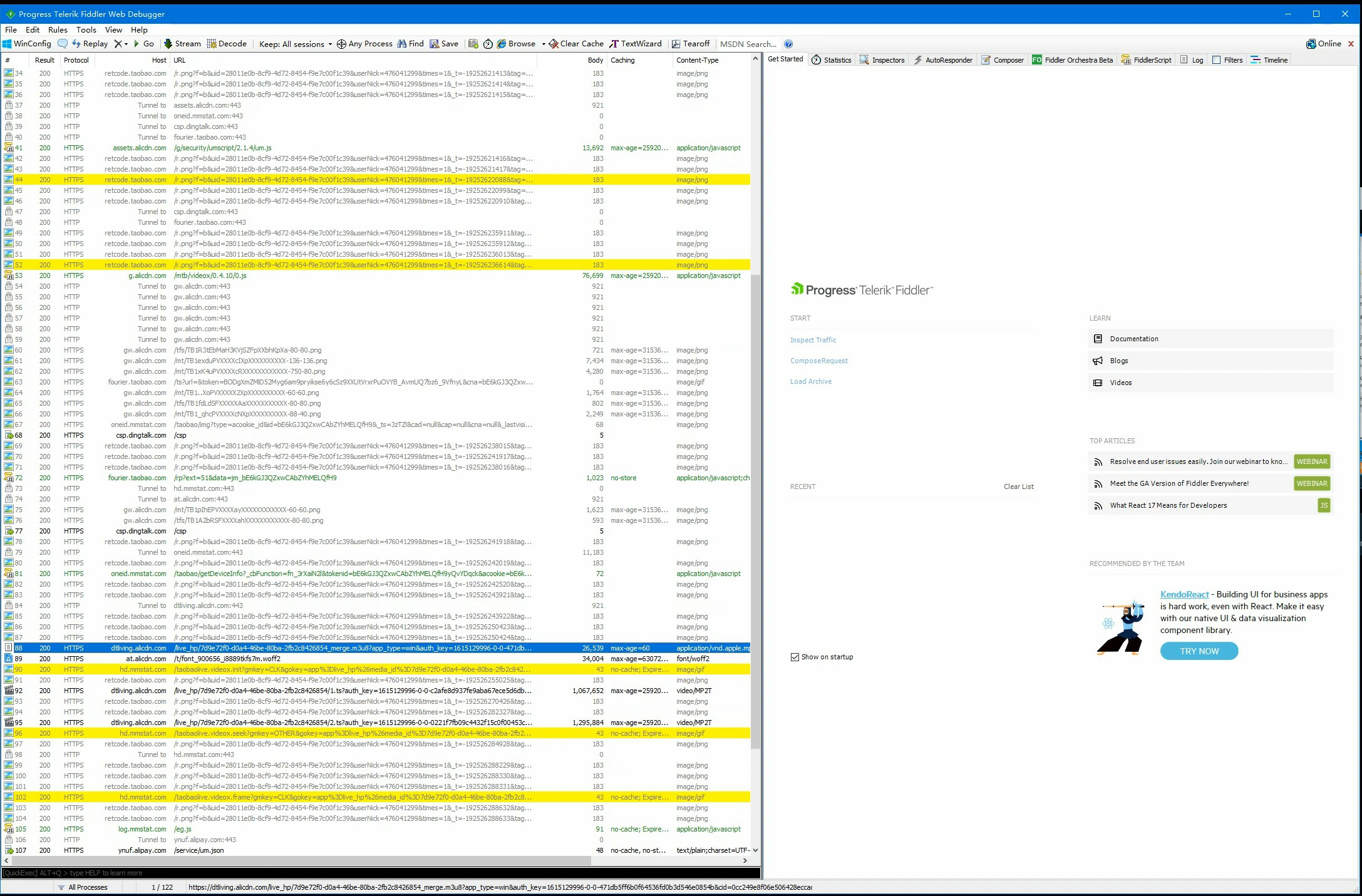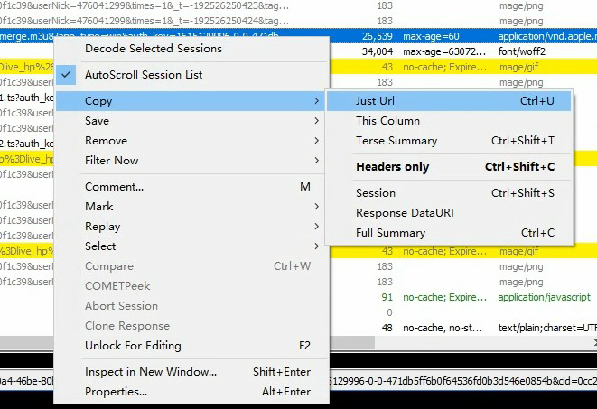 3,在代理软件的抓包中找到相关的视频文件(视频列表文件m3u8)