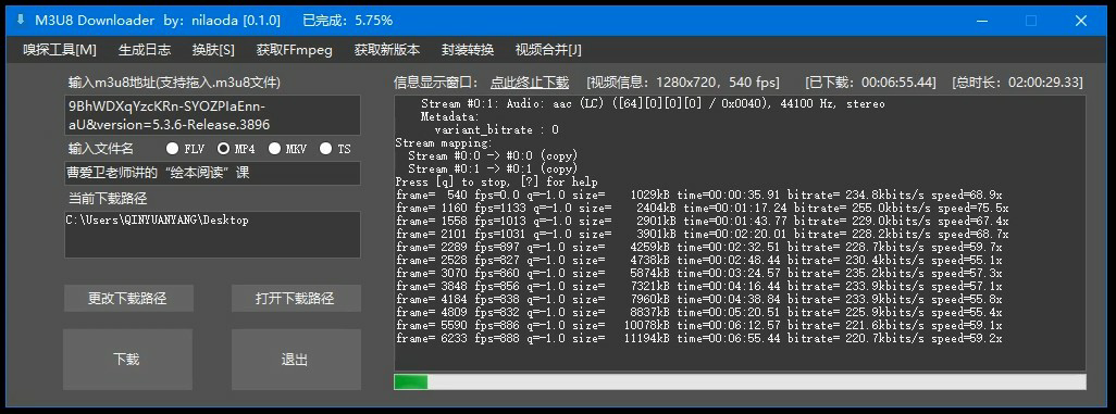 4,使用M3U8下载工具下载视频(M3U8 Downloader,请自行下载安装)