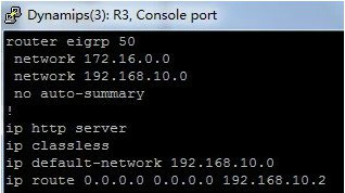 图二,R1/R2/R3要配置好EIGRP,R3中关于默认网络的配置: