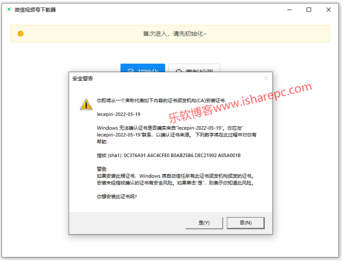 初次运行,需要点击初始化,工具会提示安装一个根证书。