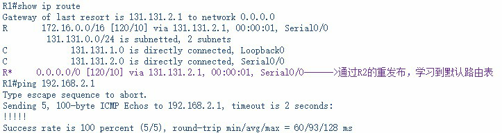 R* 0.0.0.0/0 [120/10] via 131.131.2.1, 00:00:17, Serial0/0