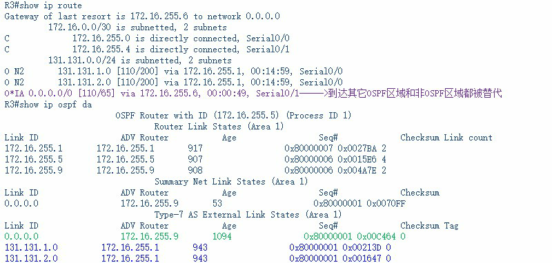 O*N2 0.0.0.0/0 [110/1] via 172.16.255.2, 00:09:17, Serial0/1